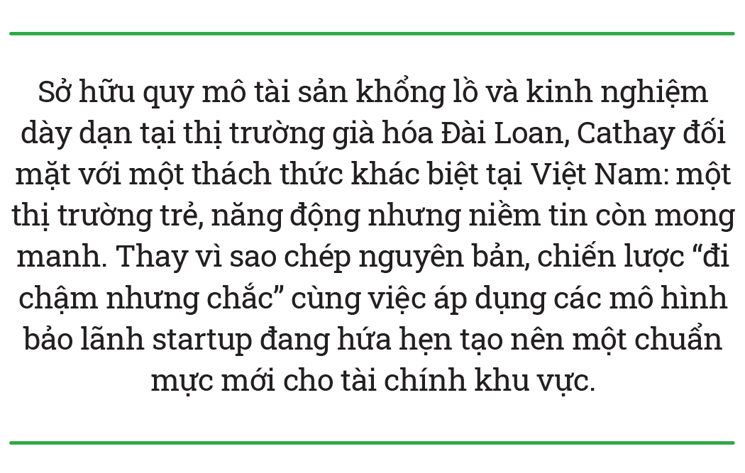 Đối với các doanh nghiệp vừa và nhỏ, đặc biệt là startup theo đuổi kinh tế xanh, Cathay giữ thái độ thận trọng nhưng không khép cửa. Tại Đài Loan, tổ chức tài chính này từng phối hợp với chính quyền địa phương triển khai cơ chế bảo lãnh tín dụng cho startup ESG, một mô hình mà Cathay đang cân nhắc nghiên cứu tại Việt Nam, trong bối cảnh hệ sinh thái khởi nghiệp đang tăng tốc.